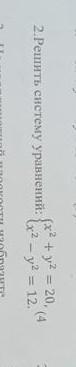 x^2+y^2+x^2-y^2=20+12 2x²=32 x²=16 x1=4 x2=-4 x^2+y^2-(x^2-y^2)=20-12 2y2=8 у1=2 y2=-2