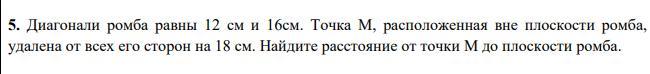 Расстояние от точки М до плоскости ромба равна √300,96см