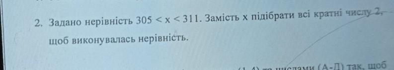 Кратні числу 2 - це числа,які діляться на 2, тому всі числа,які задовольняють нерівність - це 306, 308, 310