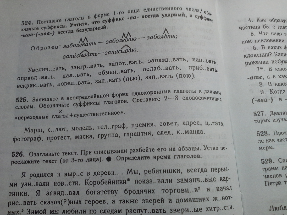 суффиксы в каждом глаголе,помимо указанных в скобках,-ТЬ
