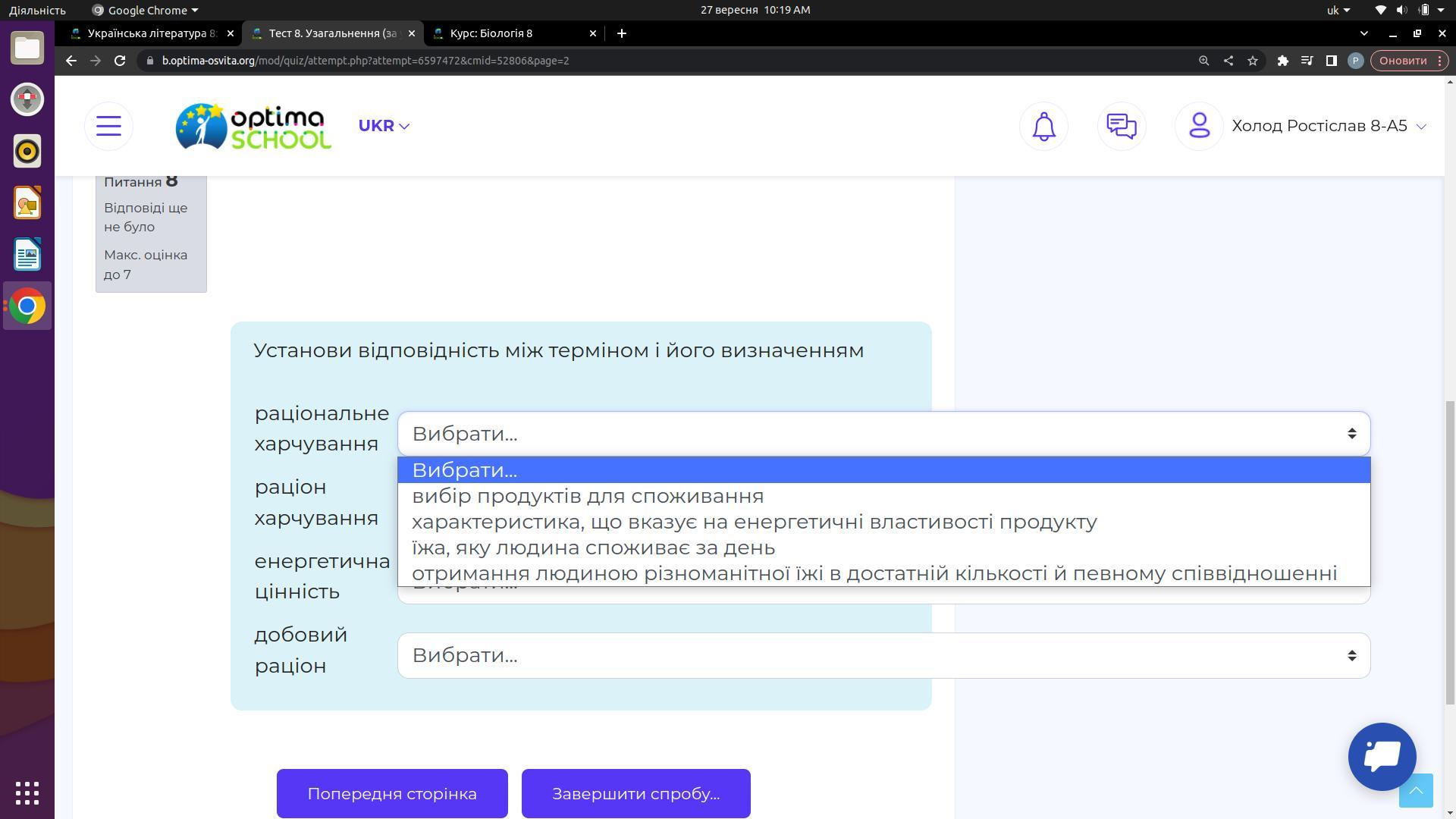 вибір продуктів та їх споживання