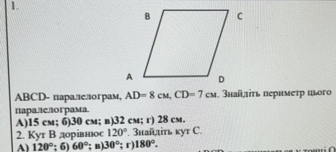 Сума кутів прилеглих до однієї сторони паралелограма дорівнює 180°