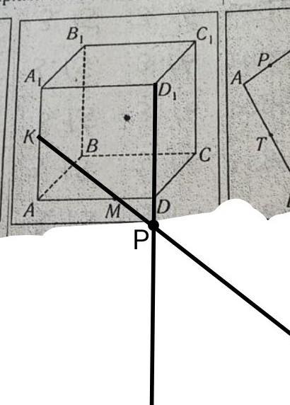 Продлим сторону D1D вниз, Соединим КМ и продлим до пересечения с прямой D1D. Точка Р пересечение прямой МК с плоскостью (D1C1C)