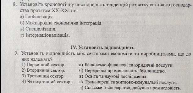 1) Первинний сектор: Сільське господарство, добувна промисловість.