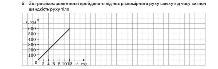 За графіком залежності пройденого під час рівномірного руху шляху від часу визнач швидкість руху тіла