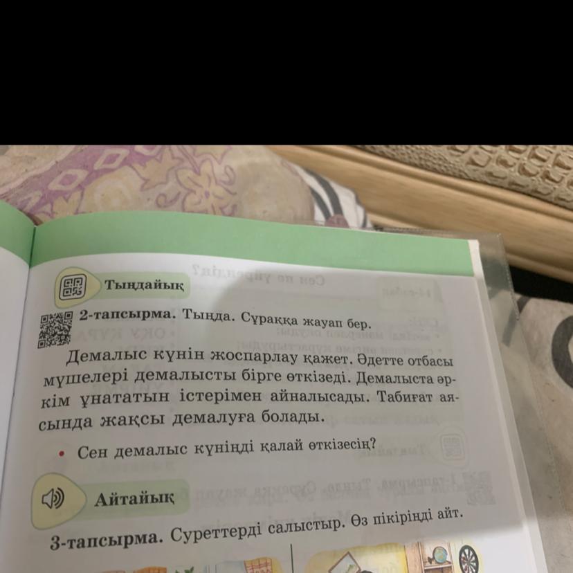 мен демалыс күнімді өте қызықты өткіземін. шетелге қыдырамын. ата-әжеме барып, әжемнің құрт, май , ірімшігін жеймін. және демалыста мен пикник ұйымдастырамын. онда мен достарыммен бірге барамын. отбасыммен бірге тауға шығамын.