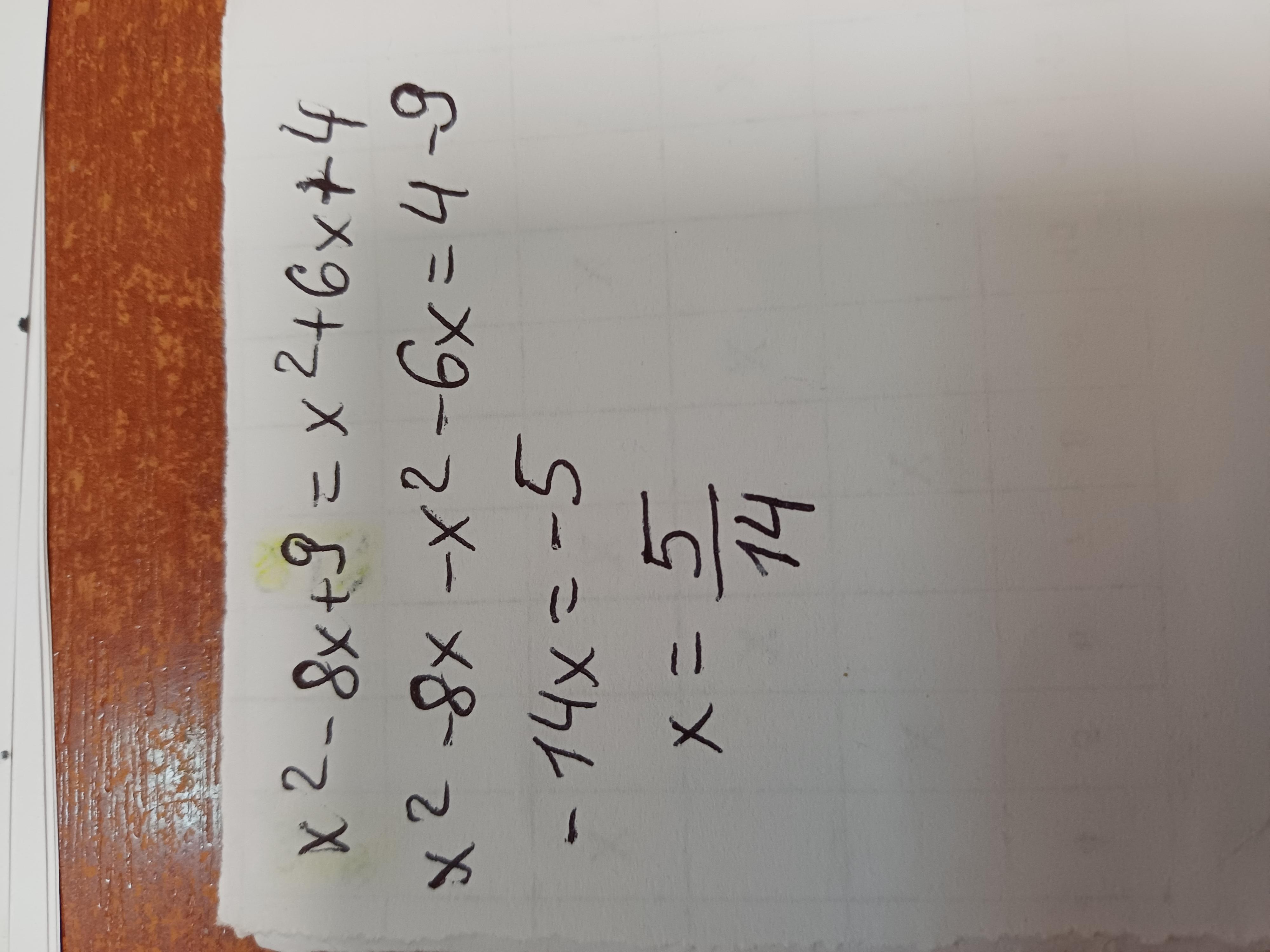При якому значенні х значення многочленів х²-8х + 9 і х² + 6х +4 дорівнюють одне одному? Допоможіть будьласка.
