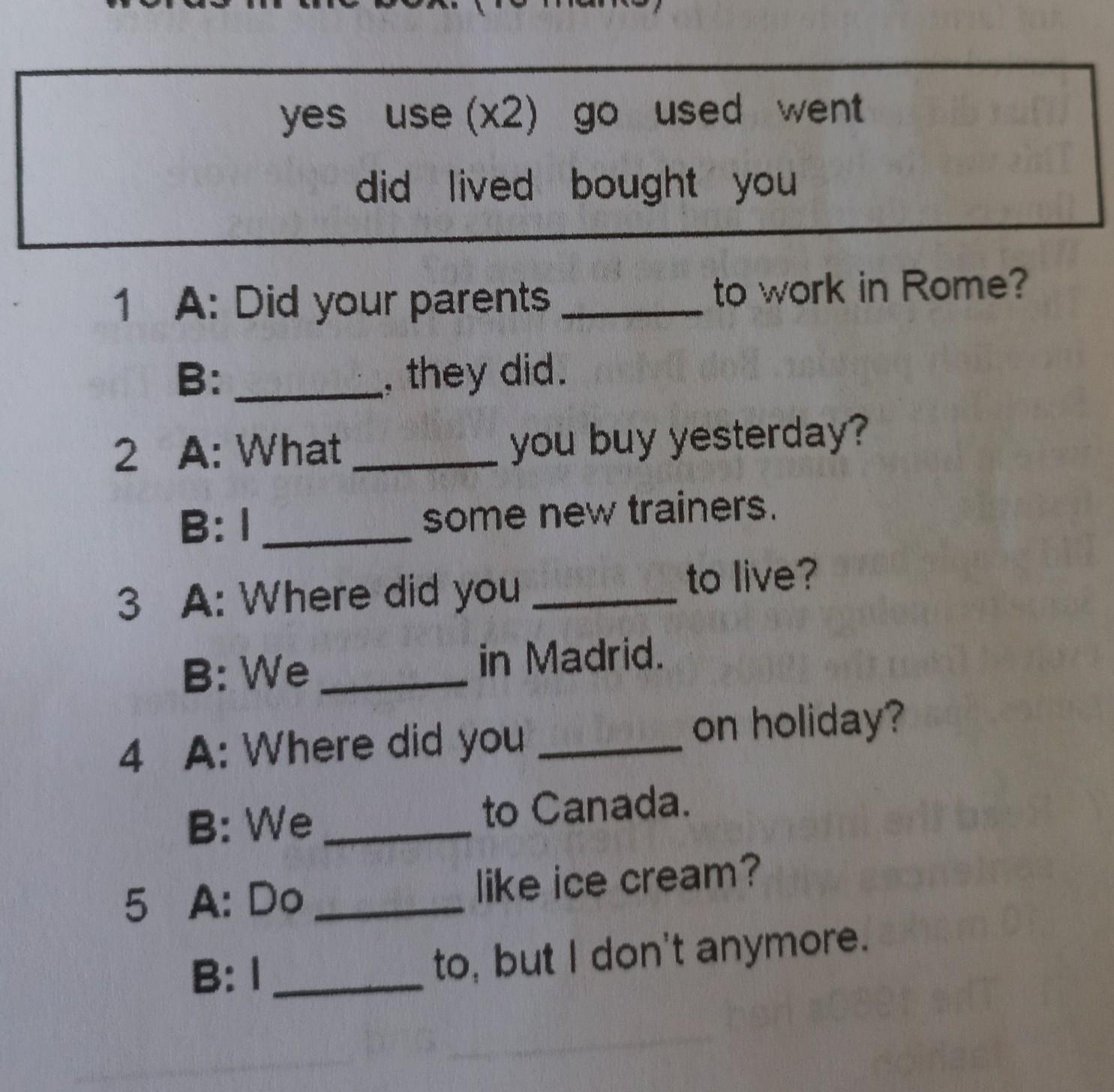 3 A: Where did you you buy yesterday? to work in Rome? some new trainers. 215278 in Madrid.