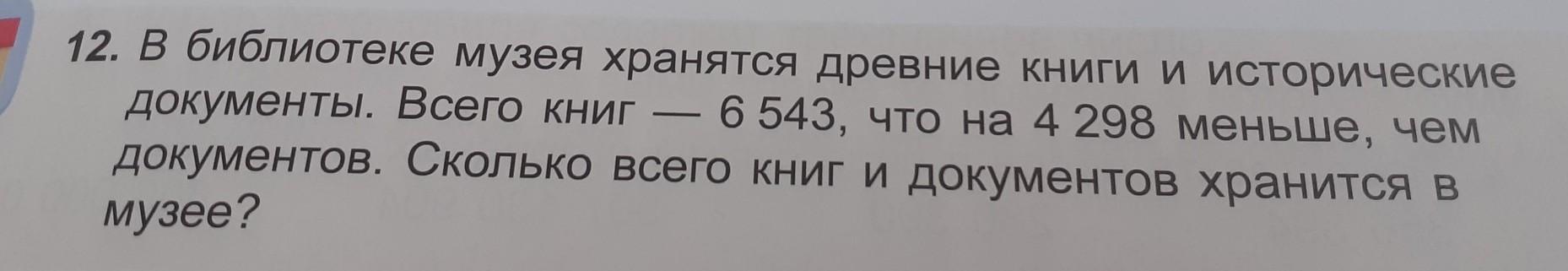 Пошаговое объяснение: Сначала узнаем сколько документов: 6543 + 4298 = 10841