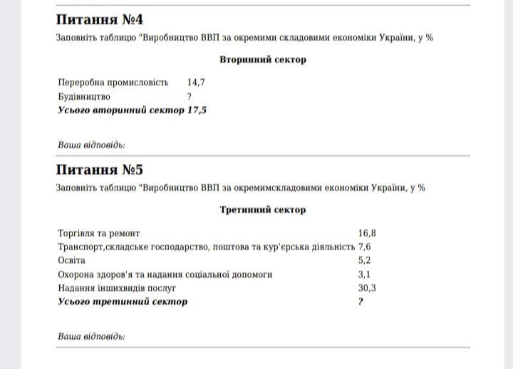 5. 16,8+7,6+5,2+3,1+30,3=63. Всього третинний сектор 63