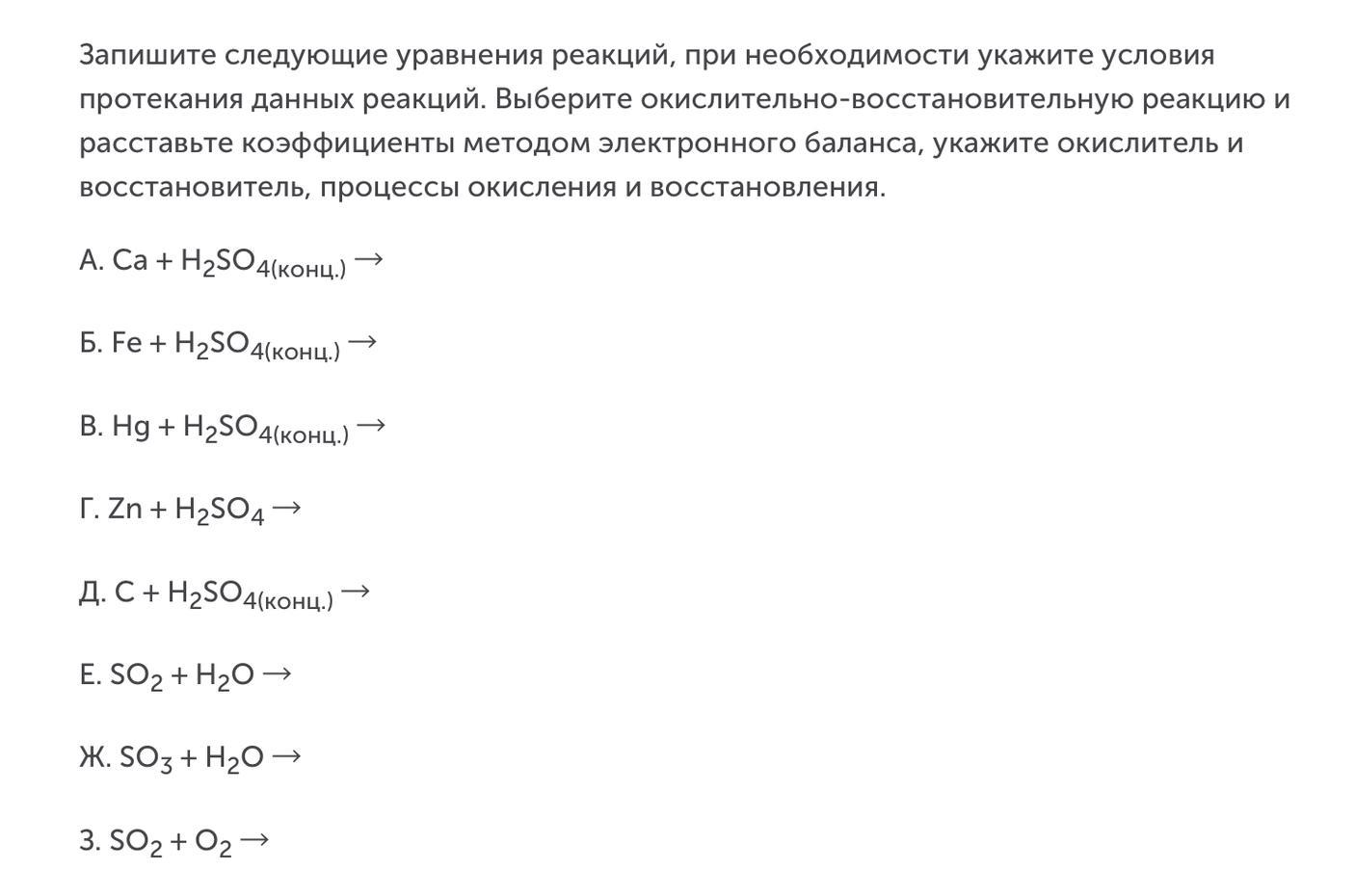 А) 4Ca + 5H₂SO₄(конц.) = 4CaSO₄ + H₂S + 4H₂O
