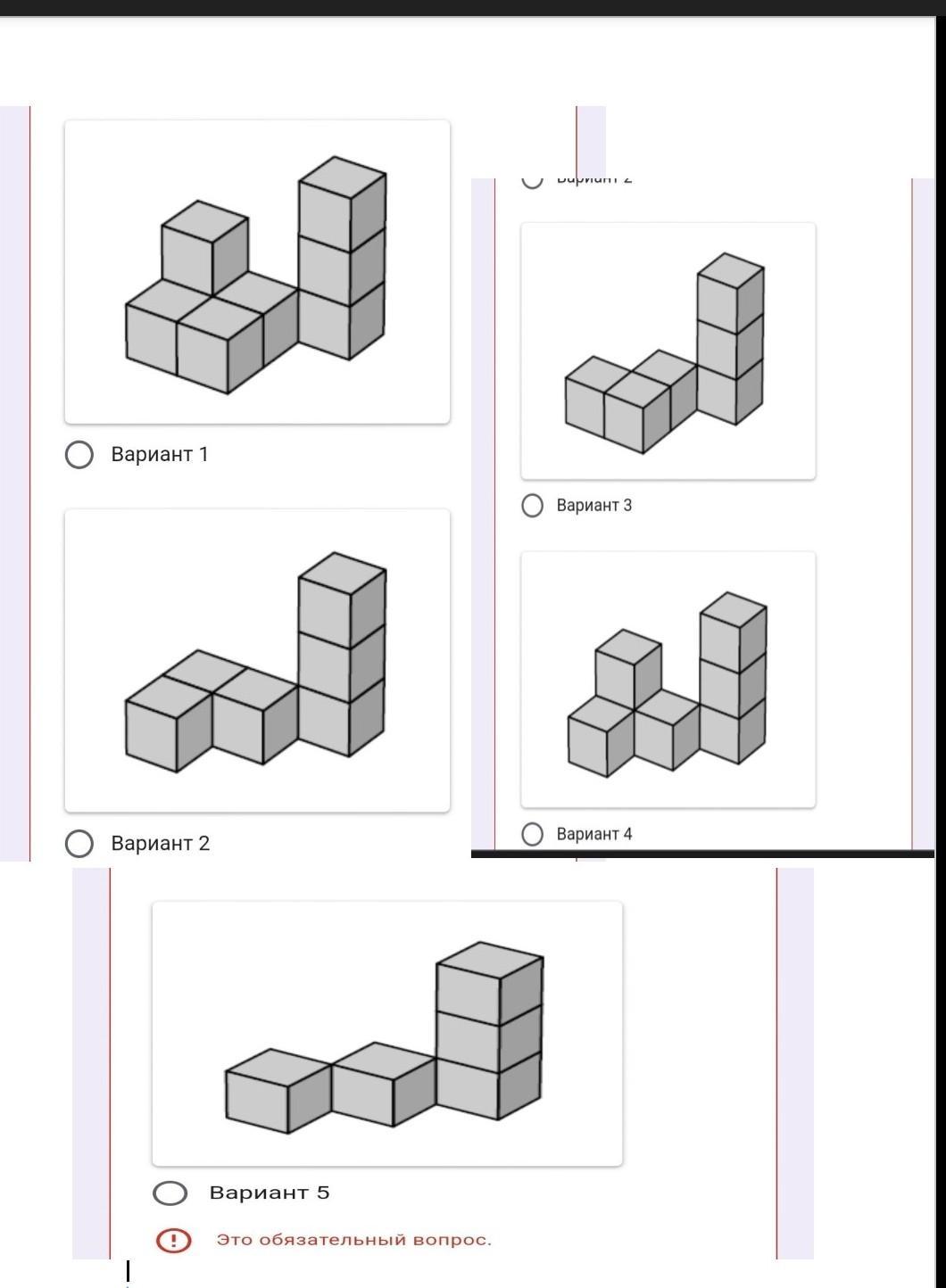 Диана выбрала одну из пяти структур, представленных ниже, и объединила ее со структурой справа. В таблице показано количество кубов в каждом столбце объединенной структуры, если смотреть сверху. Какое из пяти строений выбрала Диана?