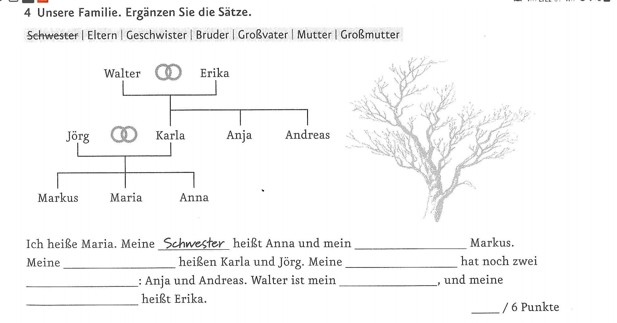 Bruder, Eltern, Mutter, Geschwister, Großvater, Großmutter.