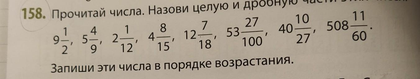 9 1/2 - 9 целое число 1/2 дробное 5 4/9 5 целое число 4/9 дробовое 2 1/12 2 целое число 1/12 дробное 4 целое число 8/15 дробное 12 целое число 7/18 дробное число 53 целое число 27/100 дробное число 40 целое число 10/27 дробное число 508 целое число 11/60 дробное число