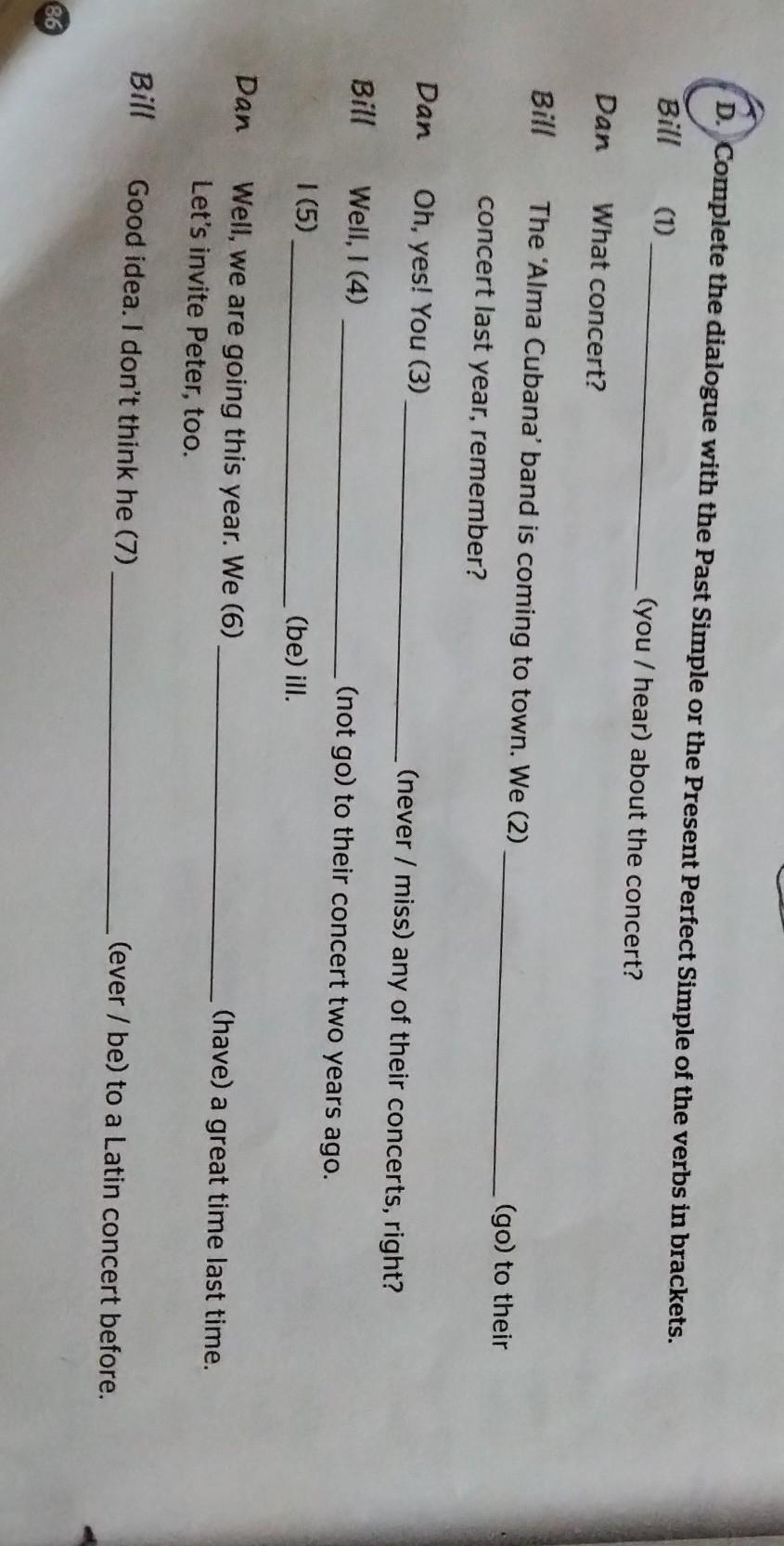 1. A. Have you ever heard.. B.No, I haven't All saw them.. B.Was it. A.Yes, I really liked.. 2.A Have you lost. B. Yes, I have. A. When did that happen? B. I was there... A.What did you do? B. I phoned. But they made me..