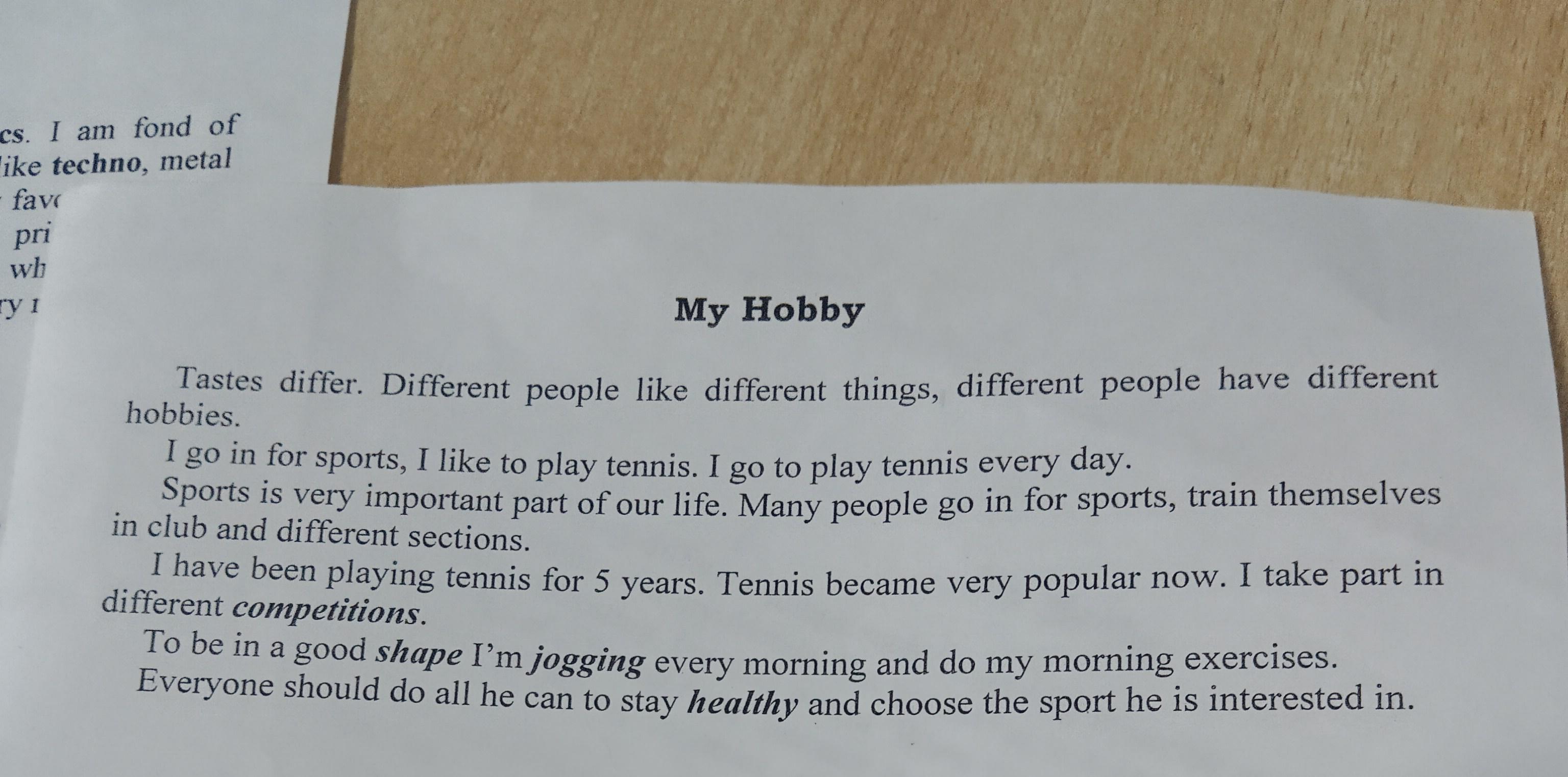 Ай хев бін плеїнґ тенніс фор файв єарс. Тенніс бікейм вері попюлар нав. Ай тейк парт ін діфферент компетишинс.