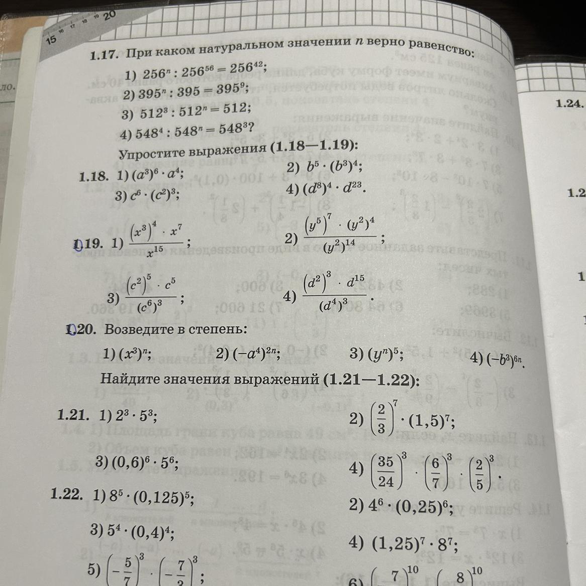 1)(х³)⁴*х⁷/х¹⁵=х¹²*х⁷/х¹⁵=х¹⁹/х¹⁵=х⁴