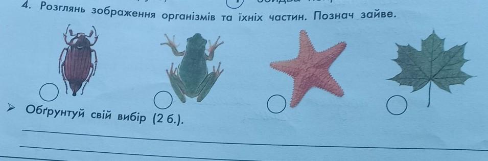 4. Розглянь зображення організмів та їхніх частин. Познач зайве. > Обґрунтуй свій вибір (2 б.).