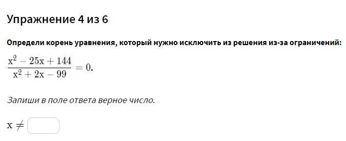 Определи корень уравнения, который нужно исключить из решения из-за ограничений: