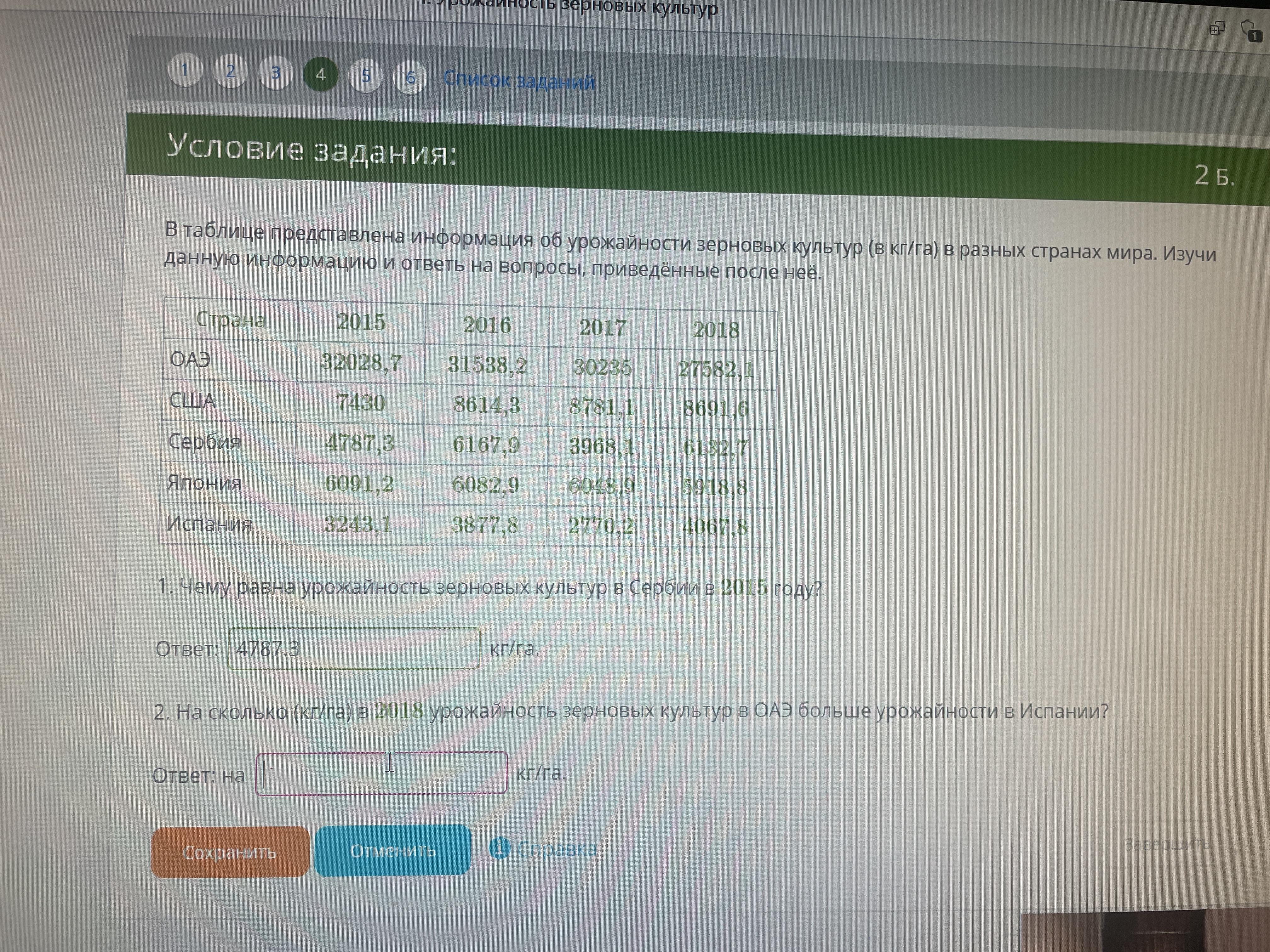 которая нам была нужна нужно было всего навсего отнять кг/га за 2018 год от ОАЭ кг/га за 2018 год от Испании и мы получаем разницу которая и будет ответом