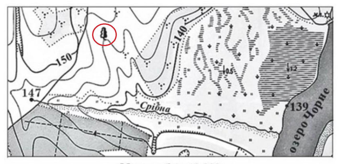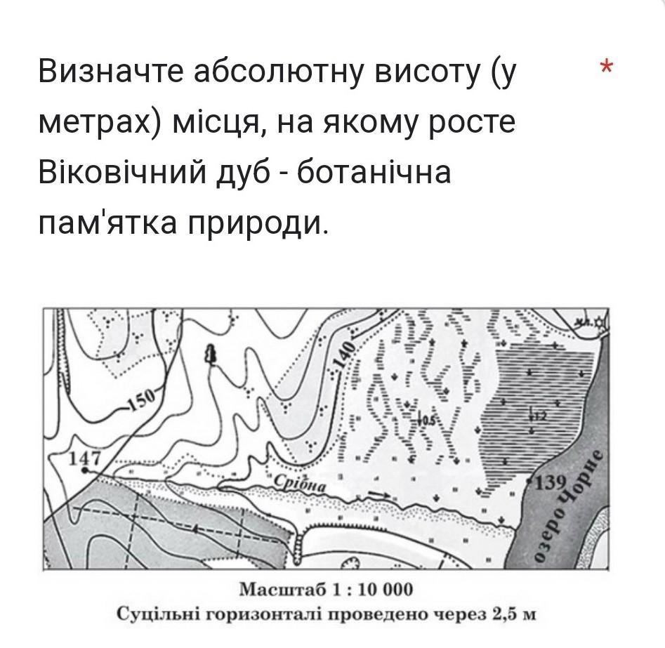 Визначте абсолютну висоту (у метрах) місця, на якому росте Віковічний дуб - ботанічна пам'ятка природи.
