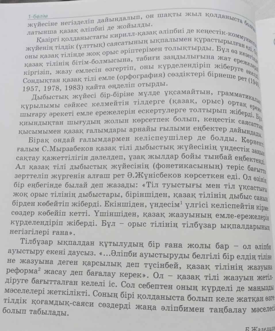 Кудайберген Жубанов 1-тапсырма. Мәтінді мәнерлеп оқындар. Публицистикалық немесе ғылыми стиль екендiгiн қолданылған тілдік құралдар арқылы анықтаңдар. Ешкандай талдау-сараптаусыз, дау-дамайсыз 1940 жылы мемле- -еттік тілдік саясаттын және мемлекеттік тәртіптік күштердін кпалымен латынша казак жазуы кирилл әліпбиіне көшірілді. Сөйтіп азак жазуы тарихында Ахмет Байтұрсынұлының зор еңбегімен алғаш от курастырылган казактын арабша төл әлiпбиi де, сонын дыбысты...