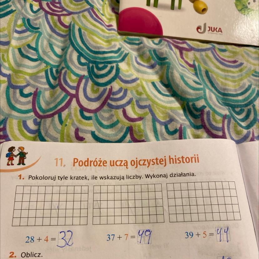 - Pokoloruj tyle kratek, ile wskazują liczby. Wykonaj działania.