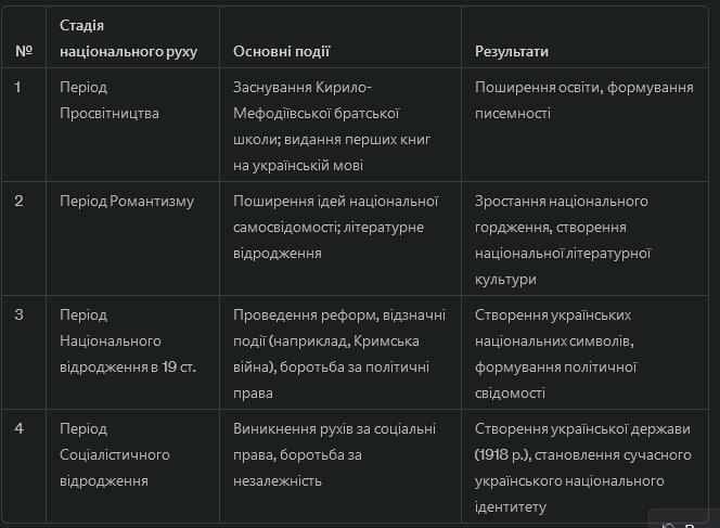 Розпочніть складання таблиці «Стадії українського національного