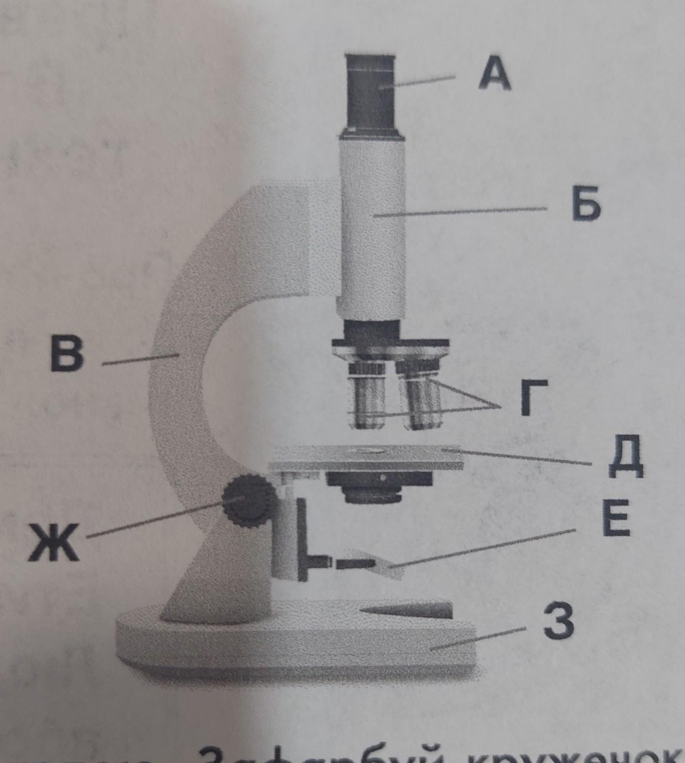3 Розглянь зображення мікроскопа. Дай відповіді на запитання.