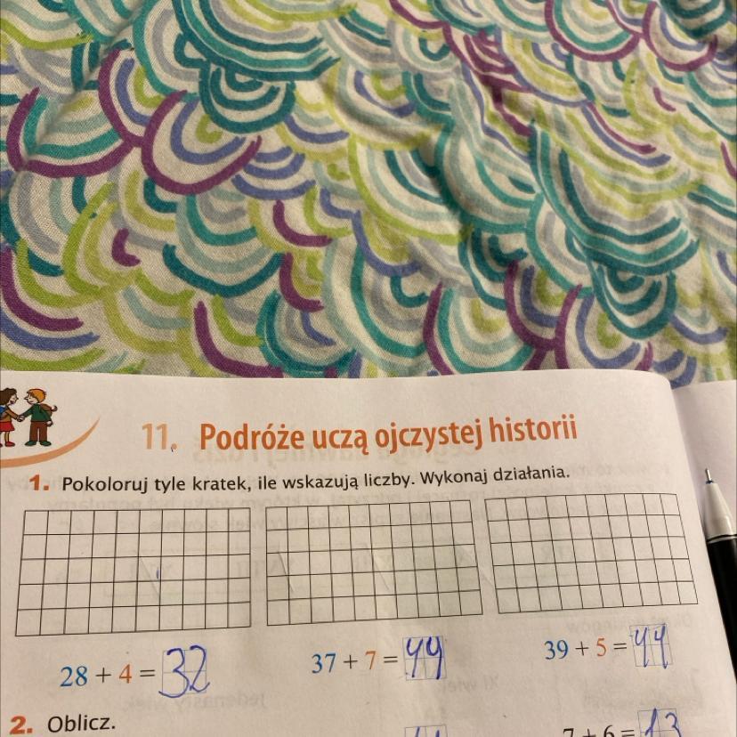 - Pokoloruj tyle kratek, ile wskazują liczby. Wykonaj działania.
