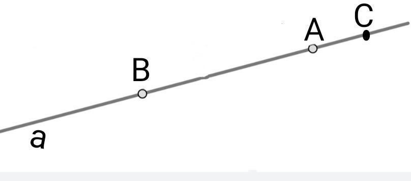 Проведіть пряму а. Позначте на прямій дві довільні точки А і В. Позначте тепер точку C так, щоб точка 4 лежала між точками В і С
