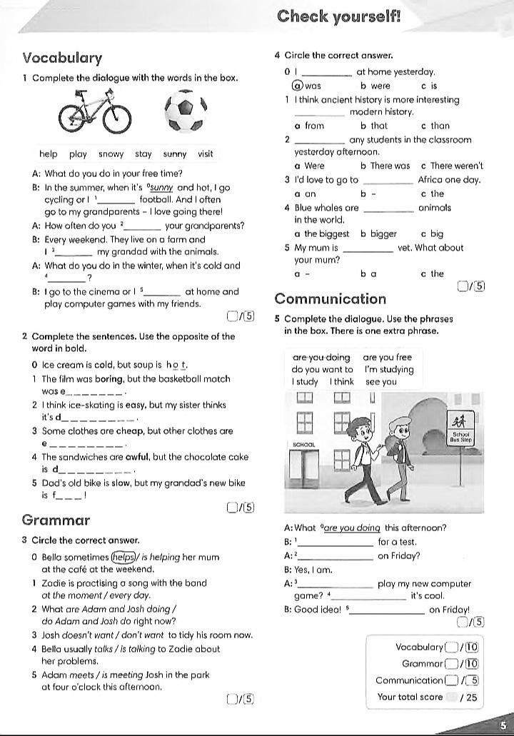 1 The film was boring, but the basketball match was e 2 I think ice-skating is easy, but my sister thinks