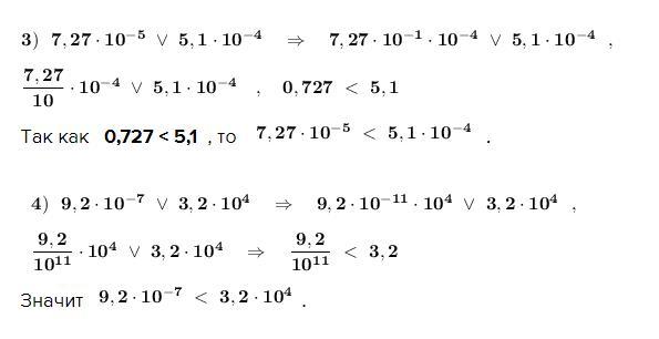 1.127. Сравните числа: 1)3,4*10^11 и 7,5*10^9; 2)3,4*10^-11 и 7,5*10^-9; 3)7,27*10^-5 и 5,1*10^-4; 4)9,2*10^-7 и 3,2*10^4