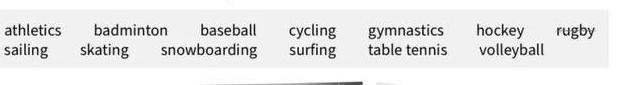 Play: badminton, baseball, hockey, rugby, table tennis, volleyball