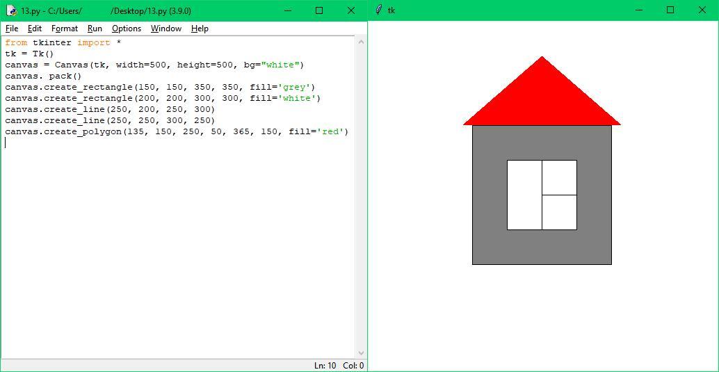 Постройте пожалуйста дом в пайтоне (самый простой ) ,крышу просто покрасьте в красный а сам дом в серый ,самый простенький домик ,не замораживайтесь и сфотографируйте чтобы было видно то что получилось и сам код ,даю 100баллов !