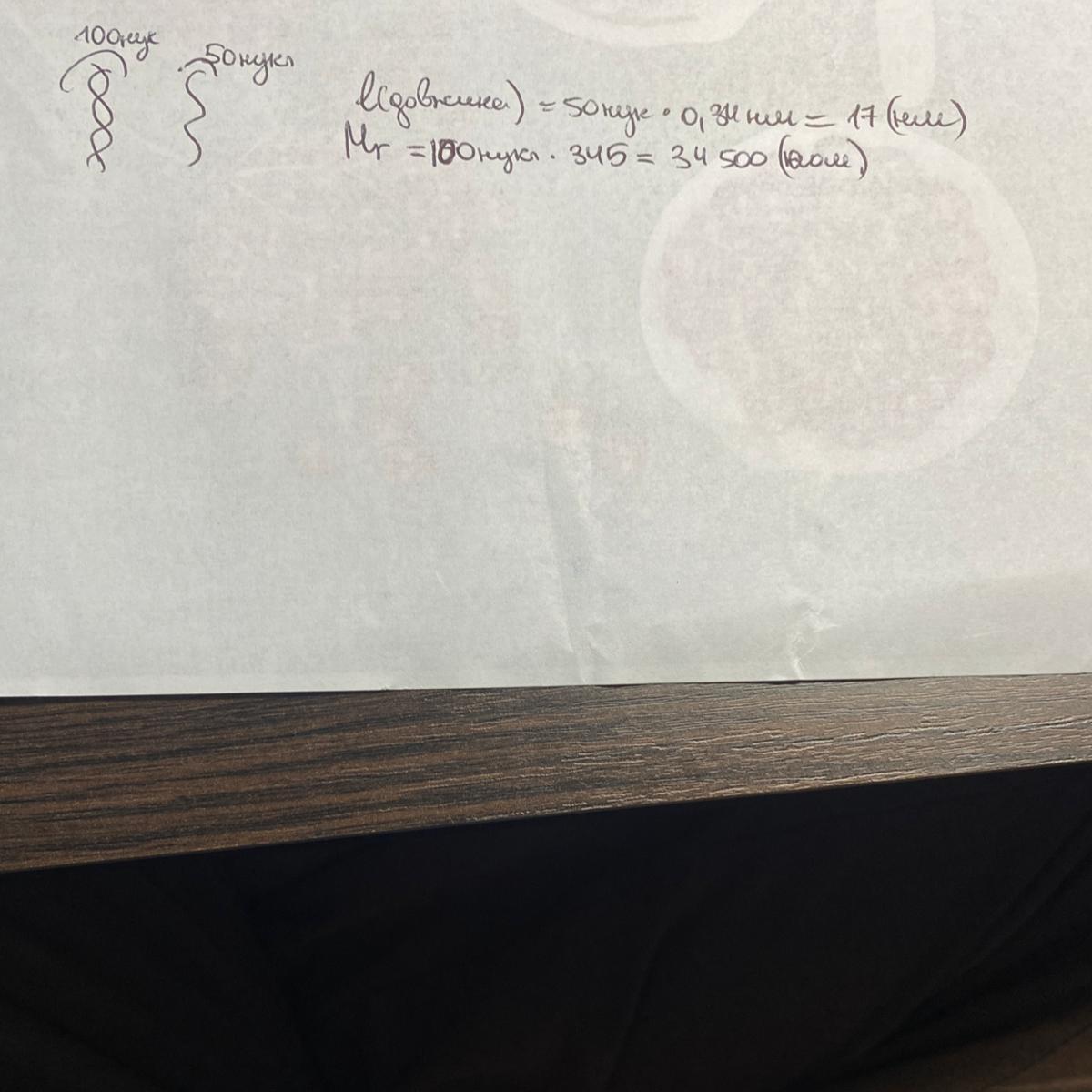 До складу фрагмента ДНК входить 100 нуклеотидів (ця кількість включає нуклеотиди з обох ланцюгів подвійної спіралі). Визнач довжину й масу цього фрагмента ДНК