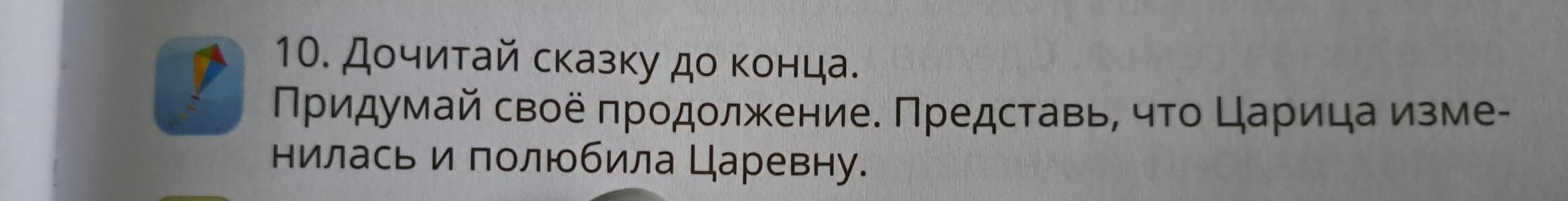 10. Дочитай сказку до конца. Придумай своё продолжение. Представь, что Царица изме- нилась и полюбила Царевну.(можно 8-10 предложений)