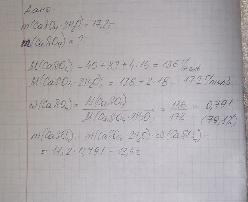 Визначте масу кальцій сульфату, що міститься у складі природного гіпсу кальцій сульфат дигідрат CaSO4 * 2H2O масою 17,2 г.