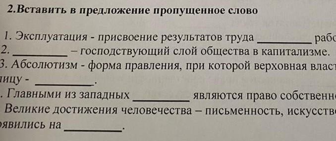 1. Эксплуатация - присвоение результатов труда рабов.
