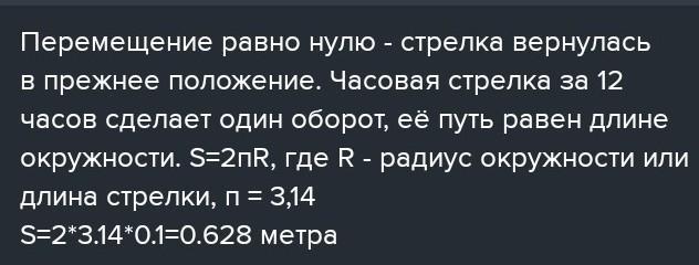 2.Найдите модуль перемещения конца часовой стрелки за 6 часов, если длина стрелки 10 см. Ответ укажите в метрах.
