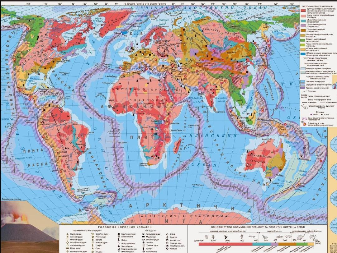 Як видно з тектонічної карти, яка дана нижче в додатку, на ній показана будова Землі.