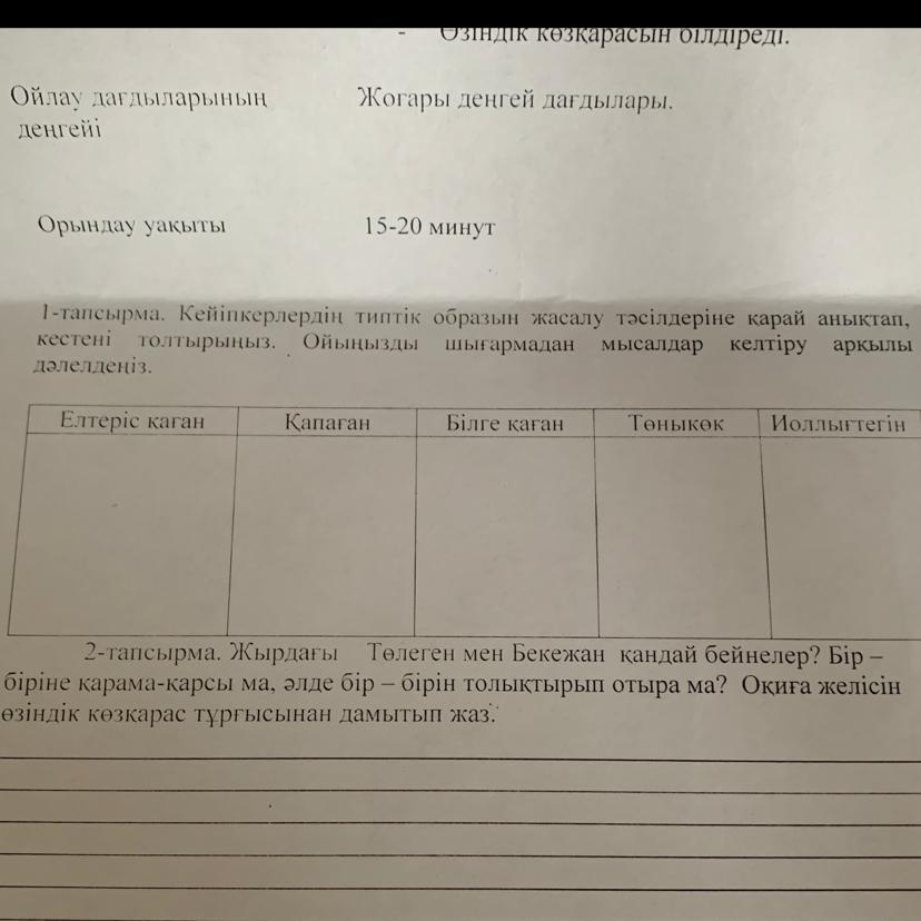 1-тапсырма. Кейіпкерлердің типтік образын жасалу тәсілдеріне қарай анықтап,