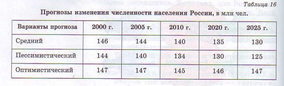 По табл. 16 ознакомьтесь с прогнозами динамики численности населения. Какой из них кажется вам наиболее реальным, почему?