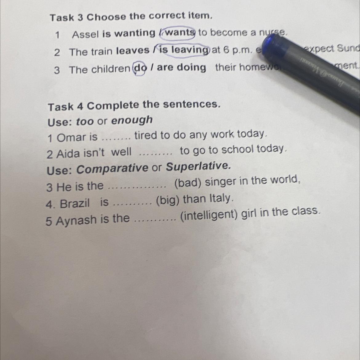 В третьем задании ошибки. 2 - leaves, 3 - are doing