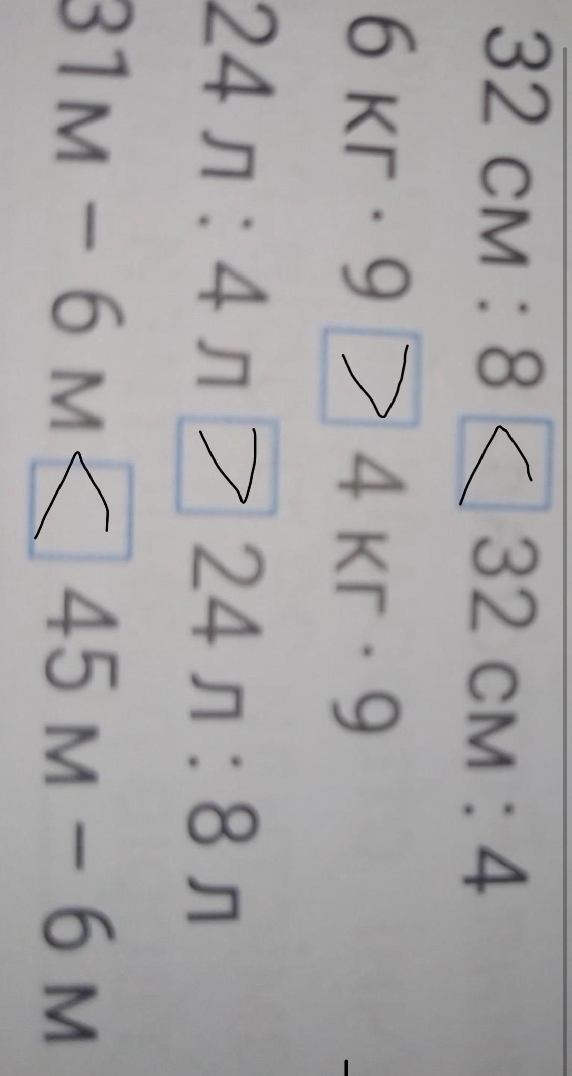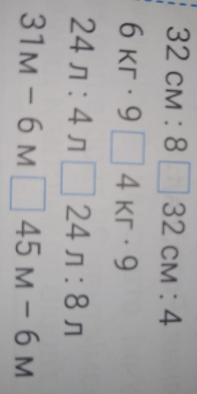 32 см : 8 32 см: 4 6 кг. 9 4 кг · 9 24 л: 4 л 31м - 6 м 34 кг + 15 кг - 24 л: 8 л 45 м - 6 м 15 кг + 3 +