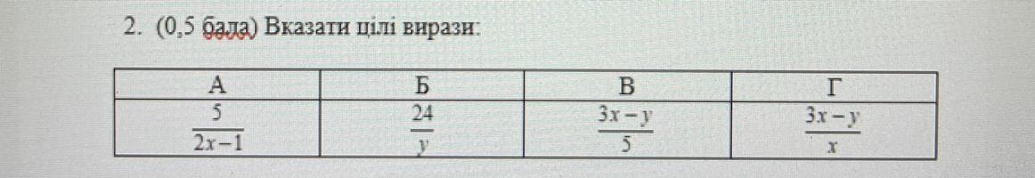 Серед наведених виразів цілим виразом є ( 3х - у )/5 .