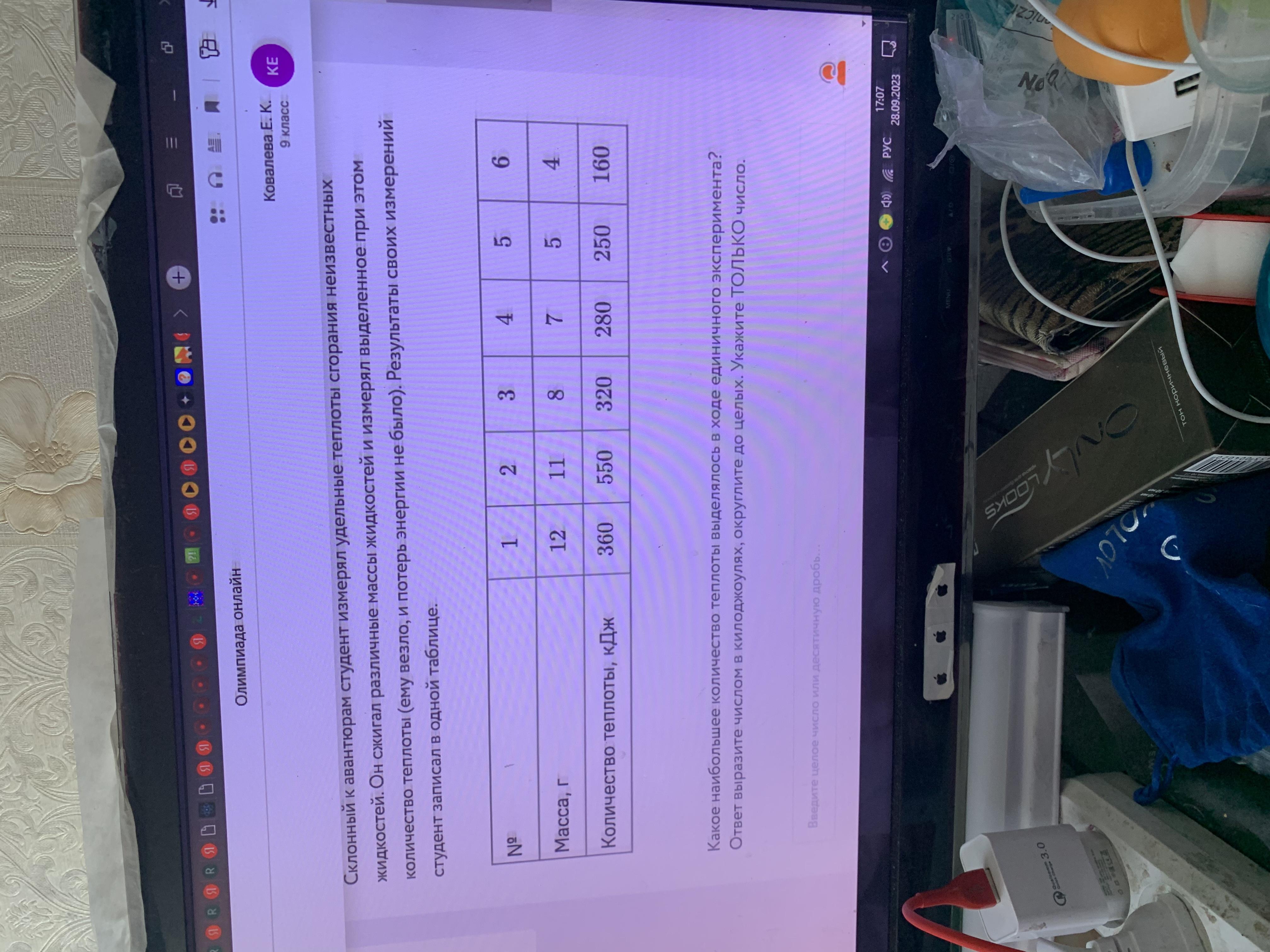 Сколько жидкостей с различной удельной теплотой сгорания использовал в ходе экспериментов студент? Укажите ТОЛЬКО число.