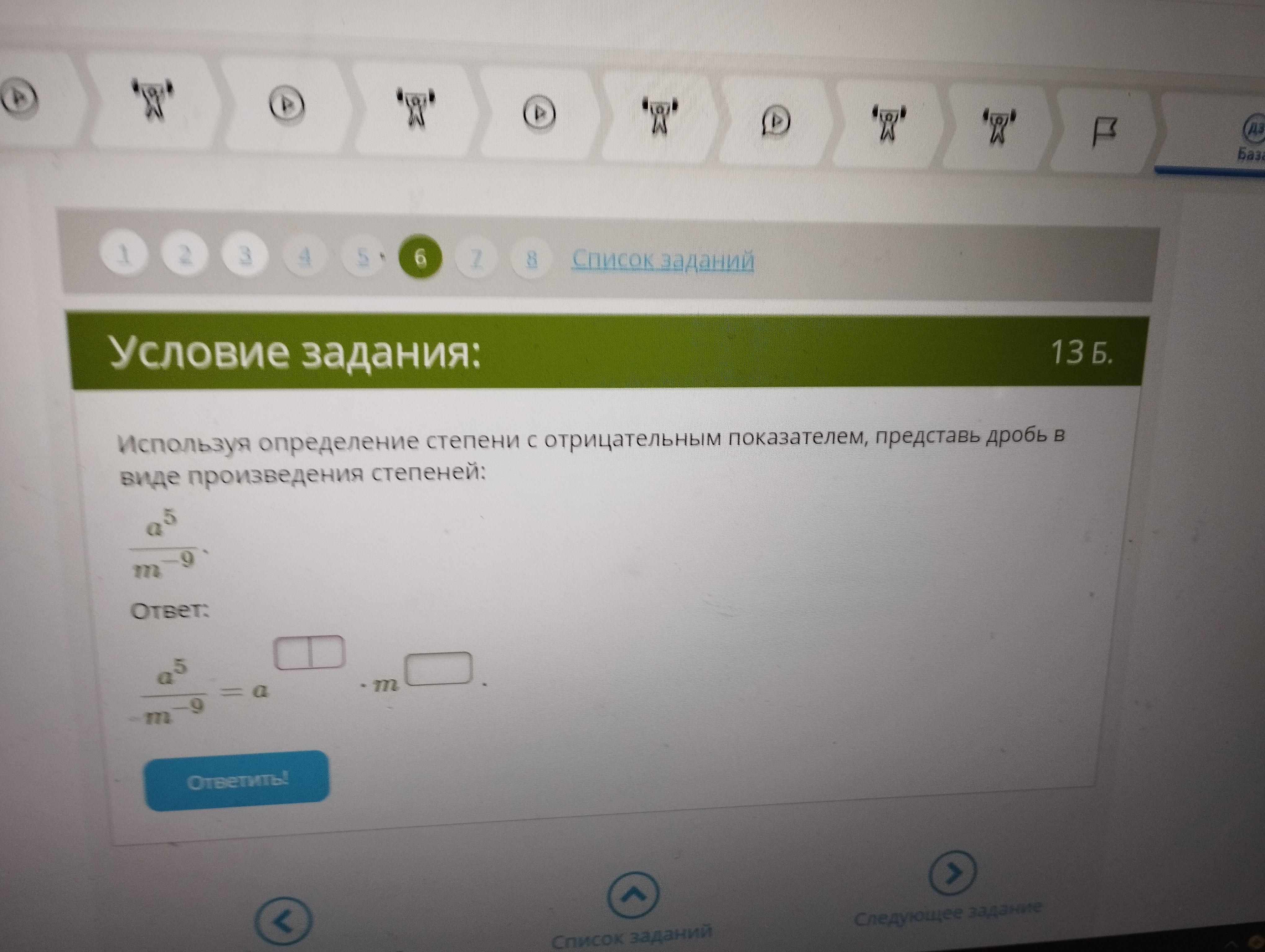 # 1 ) a⁵/m⁻⁹ = a⁵m⁹ .