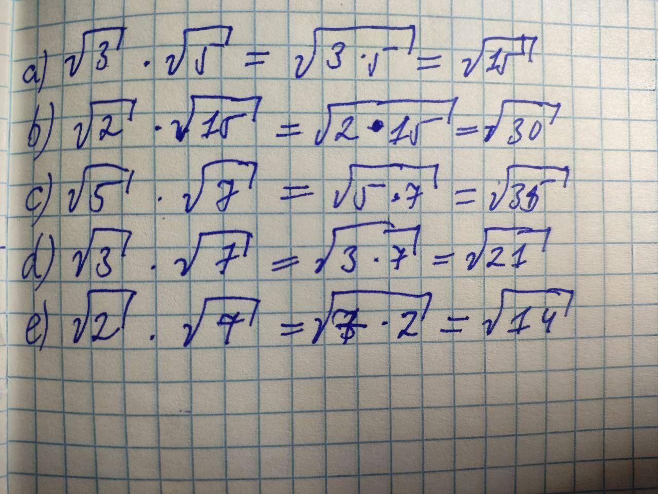 Представьте выражение в виде произведения корней. a) √15 b) √30 d) √35 c) √21 e) √42 10 Прелощ 9 1) √56 h) √14