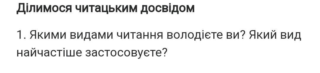 найчастіше використовую вид читання мовчки , бо так я засвоюю краще матеріал і уявляю різних персонажів та образів в цьому класному процесі .